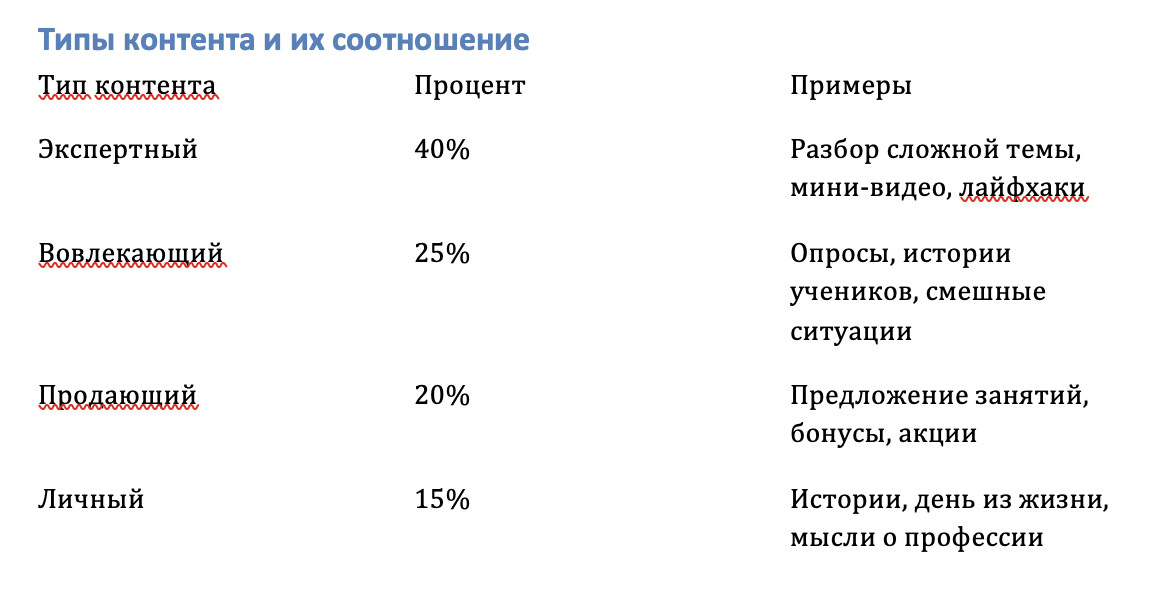 Типы контента и их соотношение