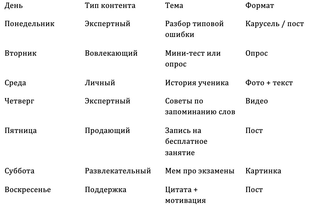 Контент-план на неделю