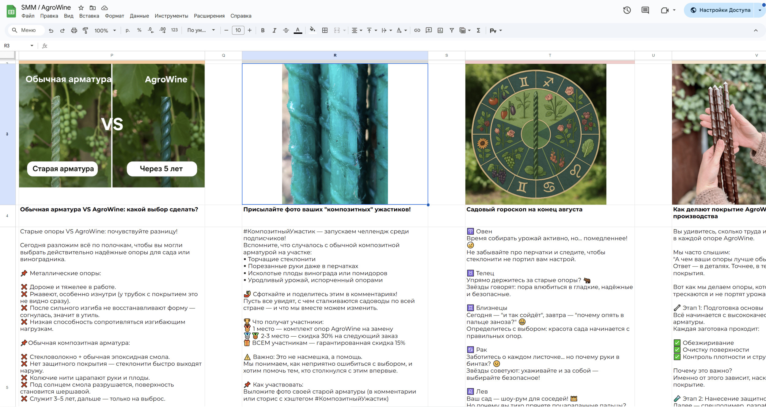 Мы делаем разноформатный контент: посты, клипы, рубрики с полезными советами, вовлекающие публикации и немного продаж. Всё согласовывается с клиентом через контент-план в Google таблице. Так работа прозрачная, понятная и эффективная.