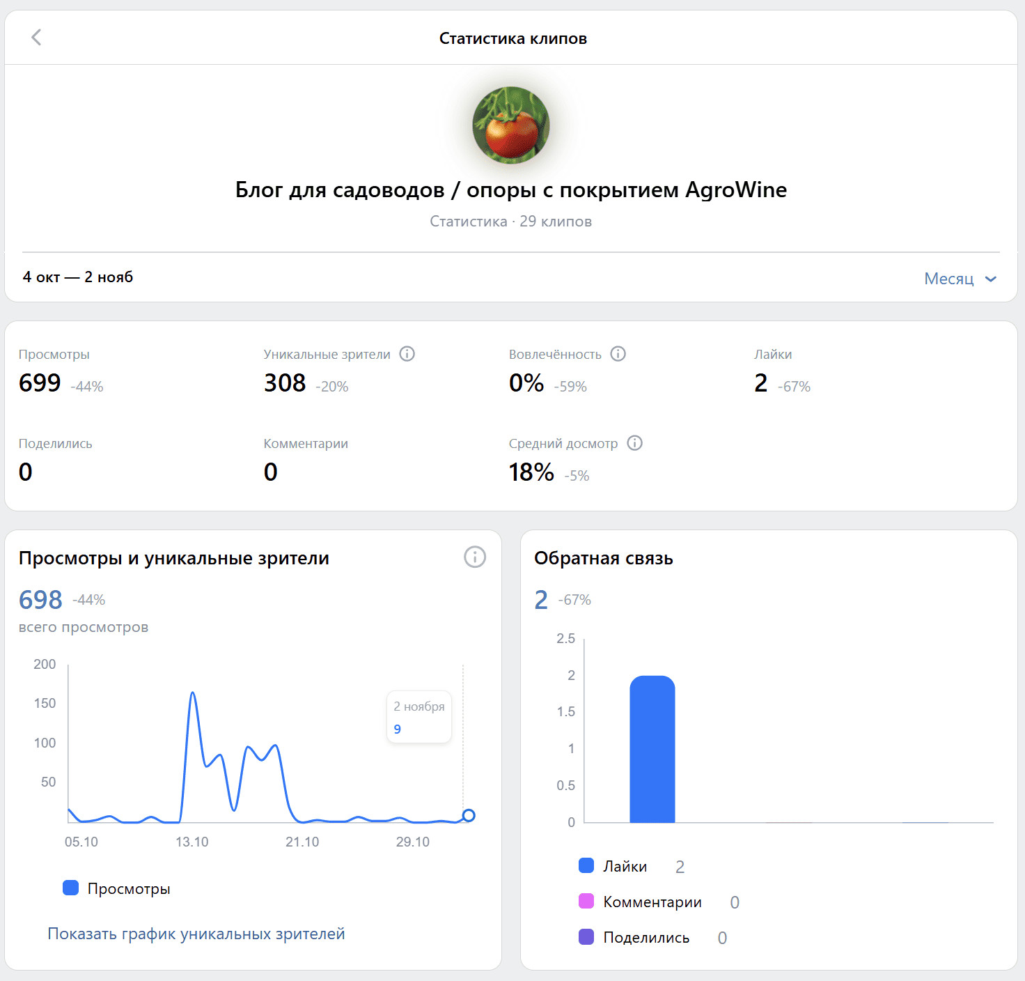 Посты стабильно набирают просмотры, клипы потихоньку выходят в рекомендации, и аудитория растёт. Да, пока без «взрывов», но всё идёт по плану мы готовим площадку к весеннему сезону, когда у садоводов начинается активная пора и им нужны эти опоры. Главный вывод из этого кейса: контент работает только тогда, когда он системный и создан под конкретную аудиторию. Если у вас есть бизнес и вы хотите, чтобы ваша группа ВКонтакте не просто «жила», а реально продавала пишите мне https://t.me/Artemkrylov Разберу вашу ситуацию, покажу, где теряются охваты, и помогу выстроить стратегию контента. Хотите получать еще больше практических советов по контенту и маркетингу? Мой блог про продвижение и контент во ВКонтакте: https://vk.com/krylovknows или https://t.me/artemkrylovblog