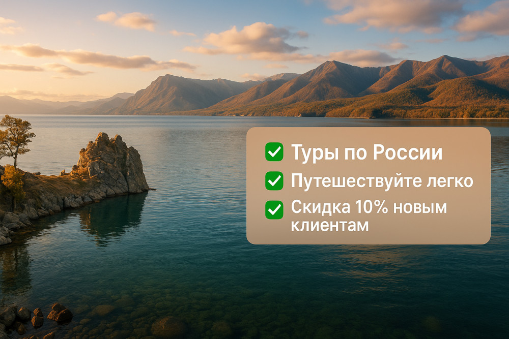 с маршрута + короткий оффер: «Открой Россию заново. Туры по Байкалу, Алтаю,