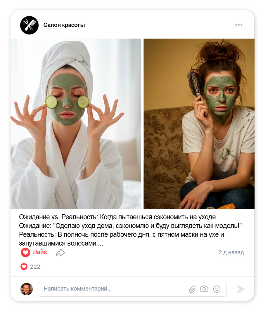 При этом времени уходит много: придумать тему, написать текст, подобрать фото, снять «до/после», выложить, ответить на вопросы и не забыть про запись.