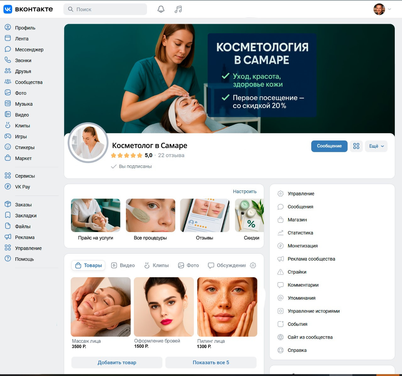 Ниже — пошаговый план, как косметологу привлекать клиентов через ВКонтакте: что оформить в сообществе, как быстро нарастить подписчиков, какие форматы контента чаще приводят заявки, как аккуратно встроить продажи и по каким показателям понимать, что вы двигаетесь в правильную сторону.