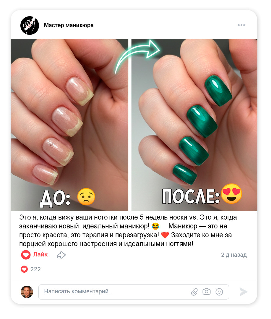 провала в ВК у мастера маникюра — не «плохие работы», а то, что контент ведётся
