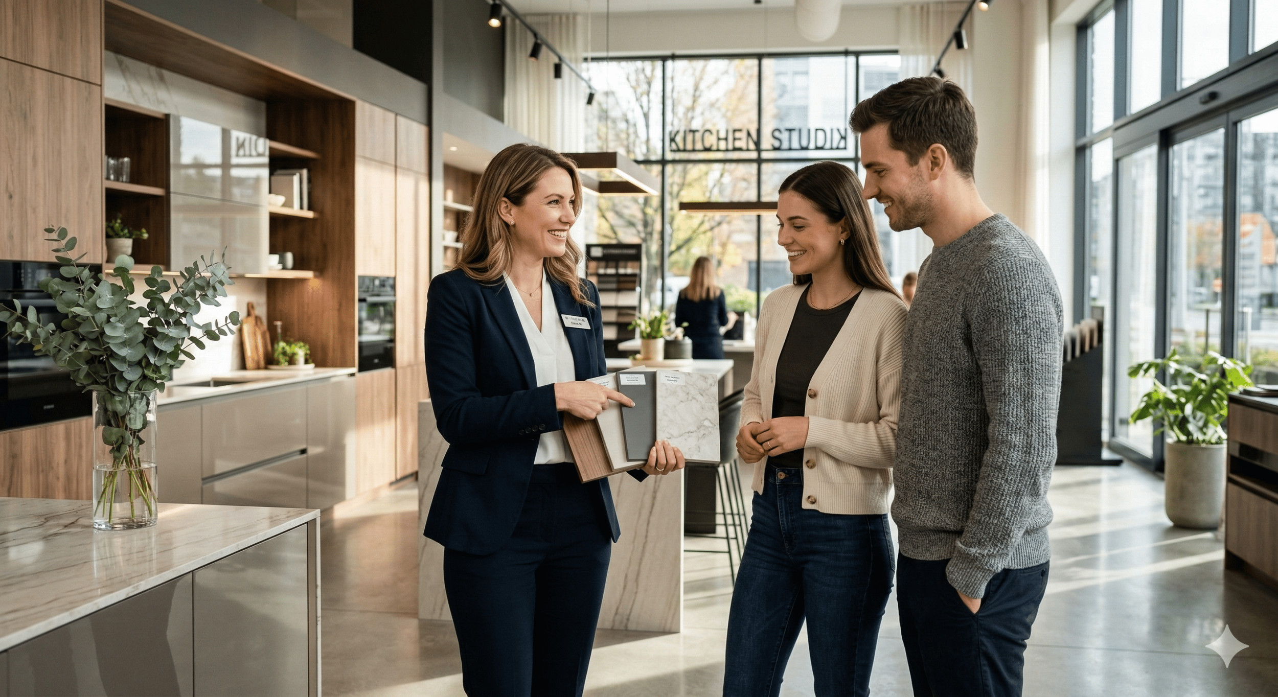 · Главные потребности: Получить красивый современный интерьер «как с картинки», сделать дом уютным, чтобы все ящики закрывались плавно, а материалы служили десятилетиями. Нужен сервис «под ключ» (доставка, подъем, сборка).