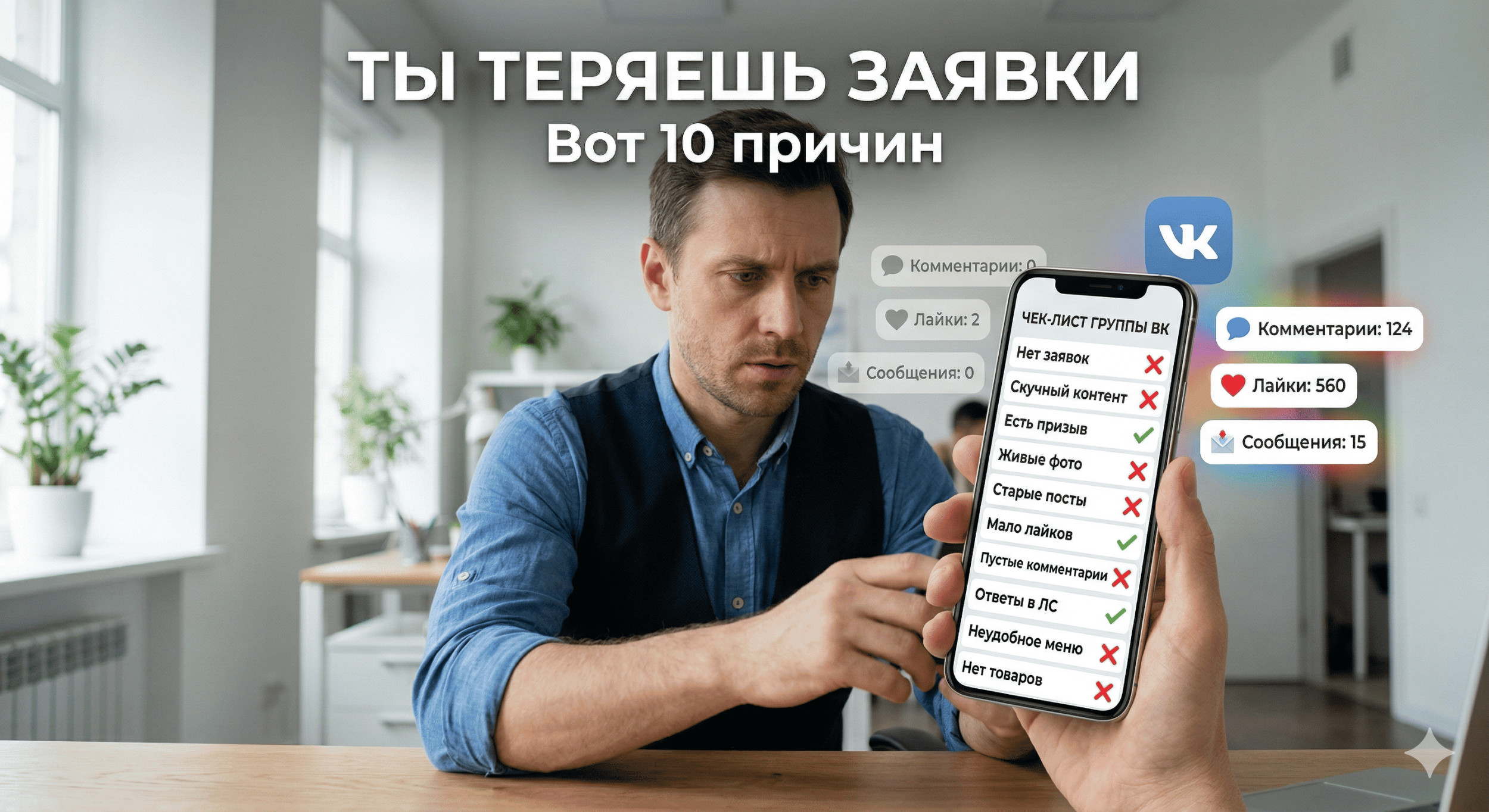 Чек-лист: 10 ошибок при ведении коммерческого паблика ВК