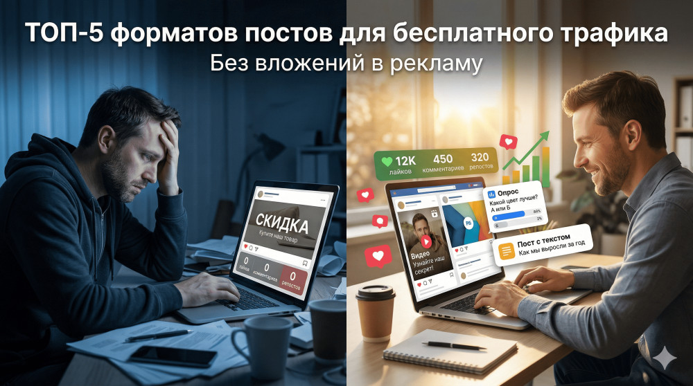 Топ-5 форматов постов для бесплатного трафика в сообщество