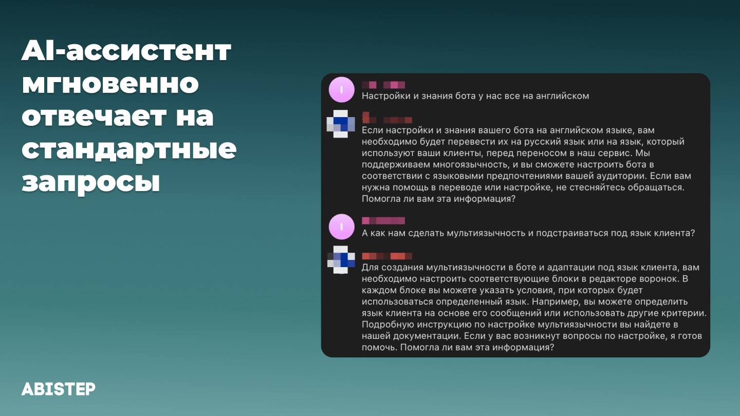 - если вопрос сложный — он не будет отправлять шаблонное «ожидайте ответа», а сразу передаёт запрос оператору уже с заполненной карточкой клиента и историей.