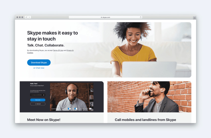 «Skype позволяет всегда оставаться на связи. Разговаривать. Переписываться. Сотрудничать».