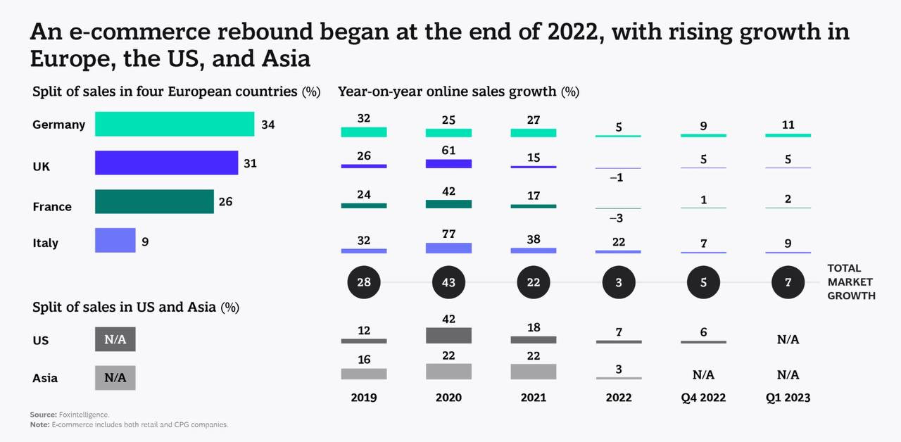 - UK и Франция упали по обороту в 2022м, но начали расти сингл диджит в Q1 2023