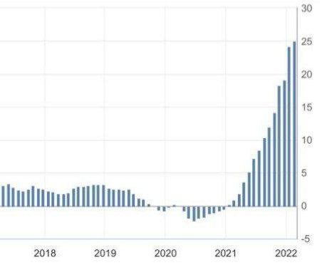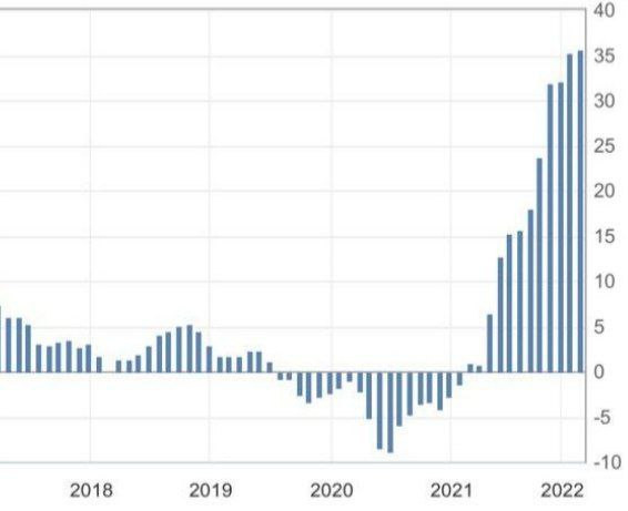 Цифры чудовищные, и боюсь, что следующие (цифры марта) будут еще более неприятными. Извините, но это уже не инфляция. Это гиперинфляция. Понятно, что в целом по Еврозоне инфляция производителей (PPI) составляет гораздо меньшую величину — 5,2% годовых.