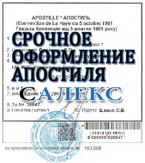 Какие преимущества оформления услуги "Срочный апостиль" в юридической компании «Салекс»необходимо выделить? проведение консультаций по процессу оформления апостиля, перевод текстов только знающими переводчиками с высшим образованием: техническими специалистами, врачами, инженерами, юристами, доставка апостилированных документов во все города и села Украины.