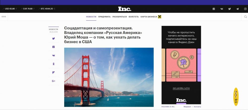 Например, как открыть свой бизнес в США ㅡ удачная и интересная тема. Об этом я писал для Inc., Rusbase, «Делового Петербурга».