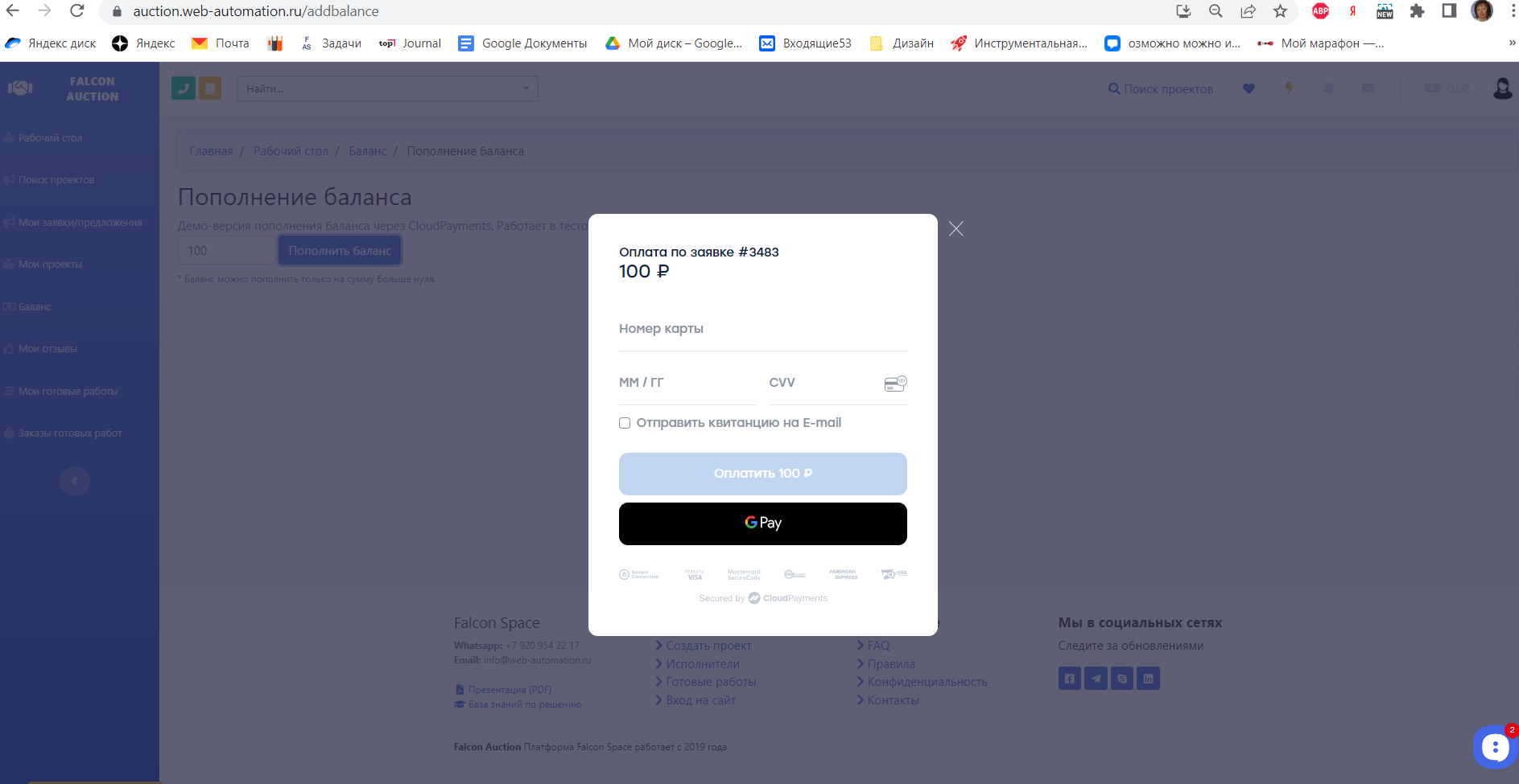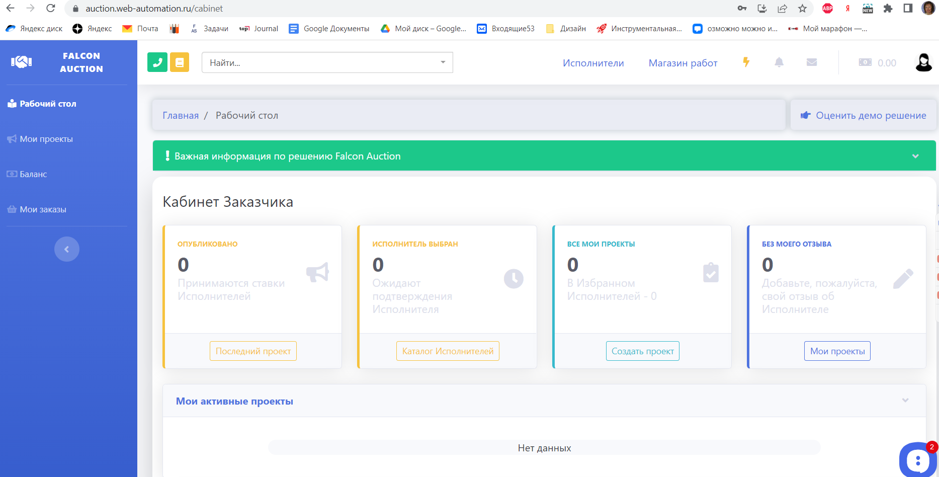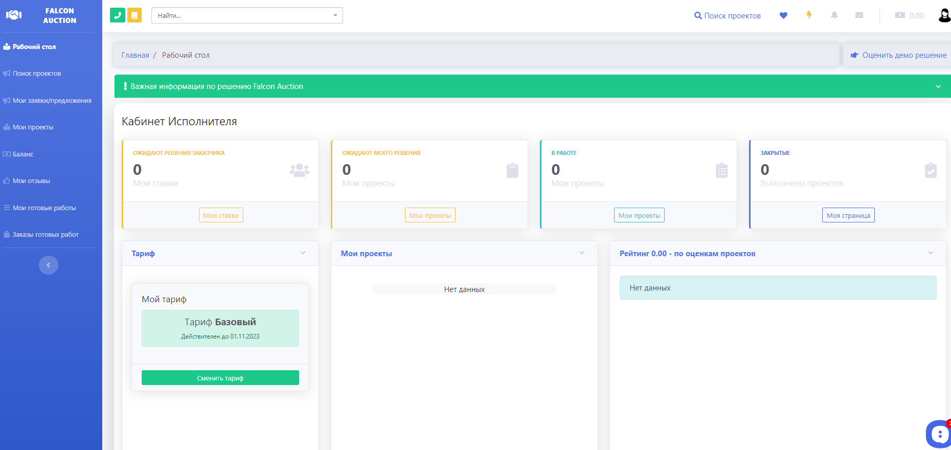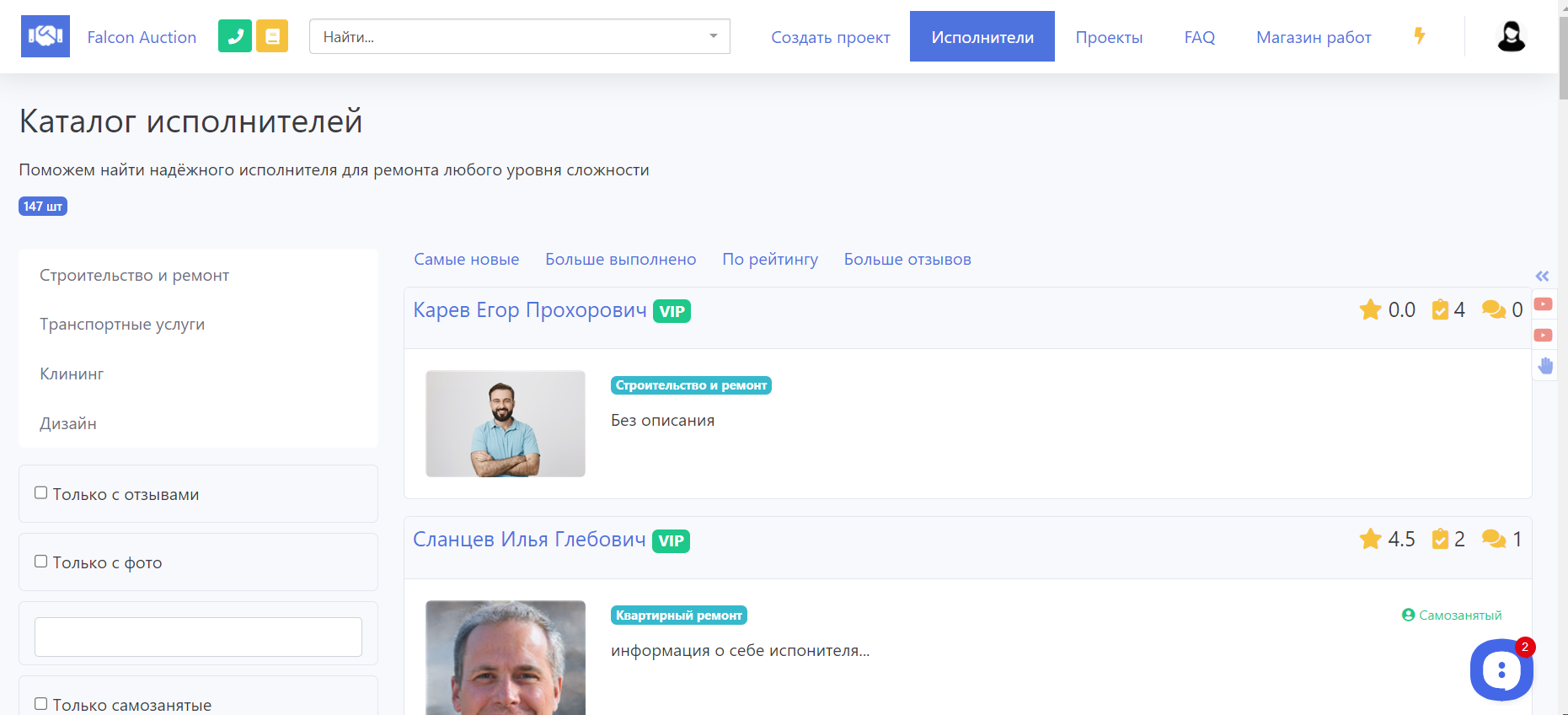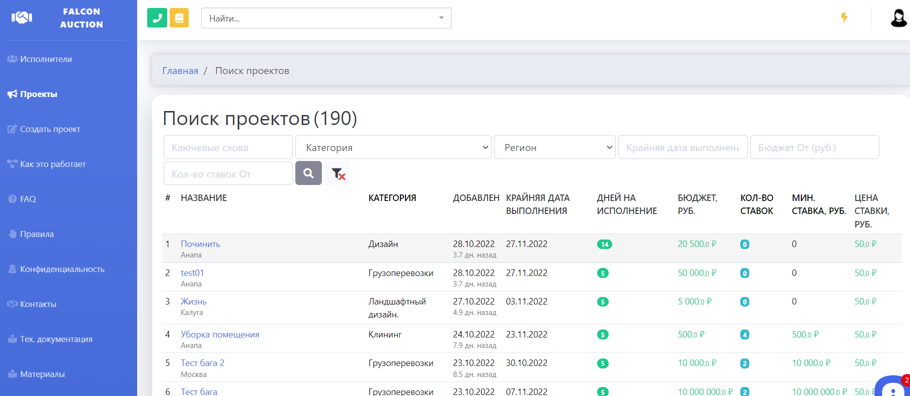 Демонстрация аукциона для фрилансеров на базе готового решения Falcon Auction