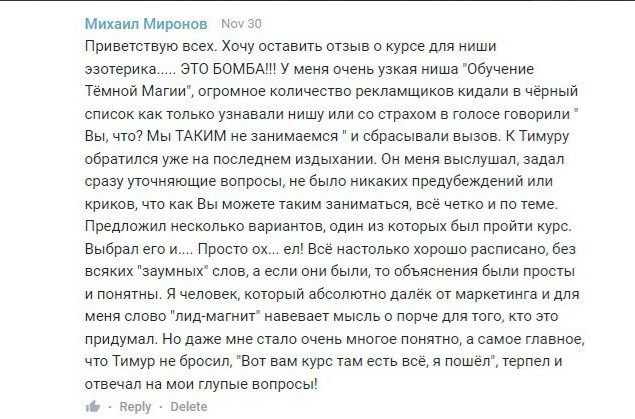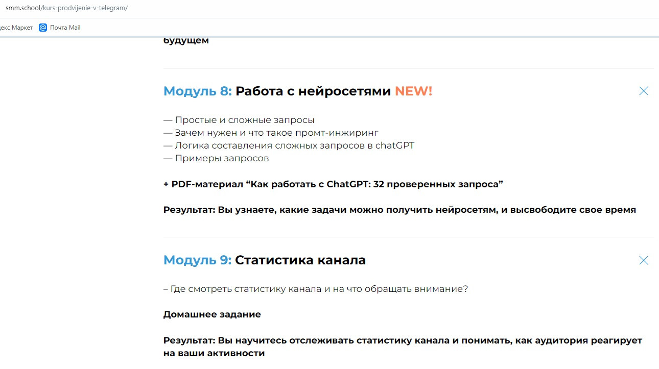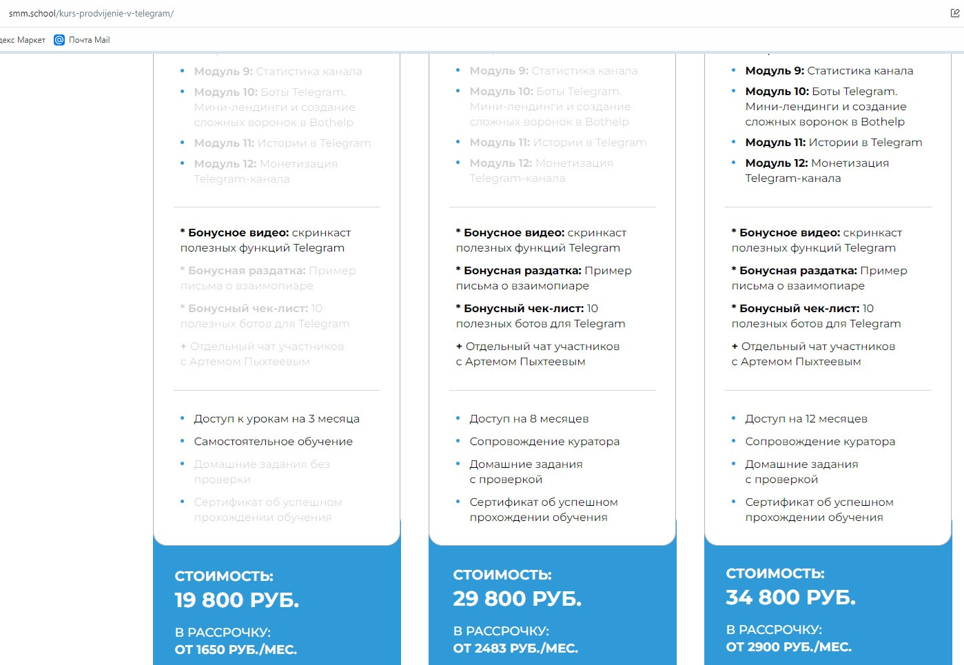 Криптовалюта 18+ Юридические ниши Бизнес Маркетинг, блогеры, коучинг Я прекрасно знаю тренд на продвижение телеграма в 2024 году и все онлайн-школы тоже залетели на эту волну. В любой онлайн-школе или на курсе тебе скажут, что, конечно, пойти учиться)) Я же все осваивал сам и сейчас у меня в команде несколько человек занимаются pr в телеграм. Если вы экспертный таргетолог Вк или умеете (более-менее не криво) настраивать директ, то скорее всего вы сами можете освоить эту площадку. Но это займет много времени. Особенно я заметил огромную волну безработных таргетологов, специализирующихся на запрещеннограме))) Про обучение — по вашему усмотрению. Мне лично потребовалось более 3х лет, чтобы освоить и изучить все тонкости телеграм продвижения. Во многое я вникал сам и ночами изучал кучу инфы по телеге. В то время (2021-2022 года) курсов толковых почти не было... Я помню свои первые статьи по тг еще в 2020 году, которые мне сейчас читать стыдно и больно)) Самое печальное, что многие мини-курсы по тг предлагают информацию на уровне моей первой статьи 2020 года)) Новостная повестка в digital среде говорит одно — «иди в телеграм! там сейчас кучу денЯк!». Но это не всегда так. В основном хотят поднять спрос на площадку, а, следовательно, закрывать больше людей на курсы. Запустились сотни различных инфоцЫганских курсов, которые предлагают всякую *ушь, которая не имеет ничего общего с маркетингом в телеграм. Они просто тупо работают от спроса. Я не удивлюсь, что найдется в рынке пару десятков курсов от выпускников Аяза или БМ. Типа «быстрый запуск в телеграм!» Купи наш курс за 1000 руб., а потом еще приобрети полную программу за 50 к, где я тебе налью водички в уши. Мораль сей басни, что очень сложно отличить инфоцЫганский курс от более-менее приличной онлайн-школы или просто от качественного курса по тг. Я не имею никакого отношения ни к бизнес-молодости, ни к лайк центру, ни к трансформатору, ни к иным подобным проектам. Прекрасно понимаю отличие инфоцЫганской лести от качественного инфокурса Кстати, если вы считаете, что любой инфо курс = продажа воздуха. То маловероятно, что вам зайдет мой материал... Я хочу показать действительно неплохие и самые известные онлайн-школы, а самое главное показать их минусы и плюсы, а также странности. Ни в одной онлайн-школе, которые разобраны в текущей статье, я не учился. Но знаю достаточно про каждую из экспертного digital информационного поля, в котором 24/7. Я хочу разобрать их офферы, программы, стоимость, работу кол-центров и другие мелкие моменты, которые простой смертный не заметит)) Я думаю любой, кто даже не особо в теме маркетинга, знает эту онлайн школу. У них много разных курсов по маркетингу. Школа узнаваемая и довольно крупная. Если вы введете в любой поисковой системе фразу «онлайн-школы», то она явно будет во многих рейтингах. Маркетинг с умом и стикер Дурова — это хороший оффер. Хороший дизайн. Классная упаковка. Но сама фраза «такому не учат на других курсах»? А давайте разберем ее. — Глубокая аналитика продвижения Такое есть почти во всех курсах и онлайн-школах — Подробный копирайтинг Есть одна вещь — в тг нет умной ленты и никто посты не репостит, поэтому по сути контент-маркетинг это удержание аудитории, а не продвижение. Смысл в том, что пройдя блок про копирайтинг в данном курсе, не факт, что это вообще нужно будет именно для прод