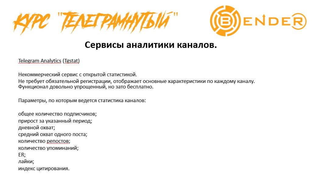 9) Курс «Телеграмнутый» от рекламного агентства трафика «BendeR».
