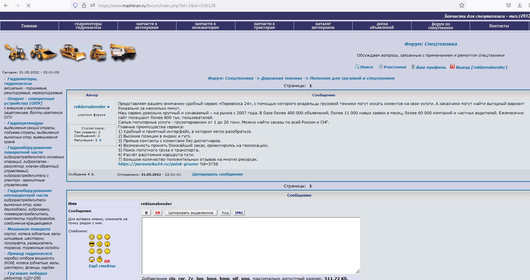 Т.е. у меня есть опыт не только в рекламе и маркетинге, но и в наемной работе — знаю некоторые тонкости внутри бизнеса по спецтехнике.
