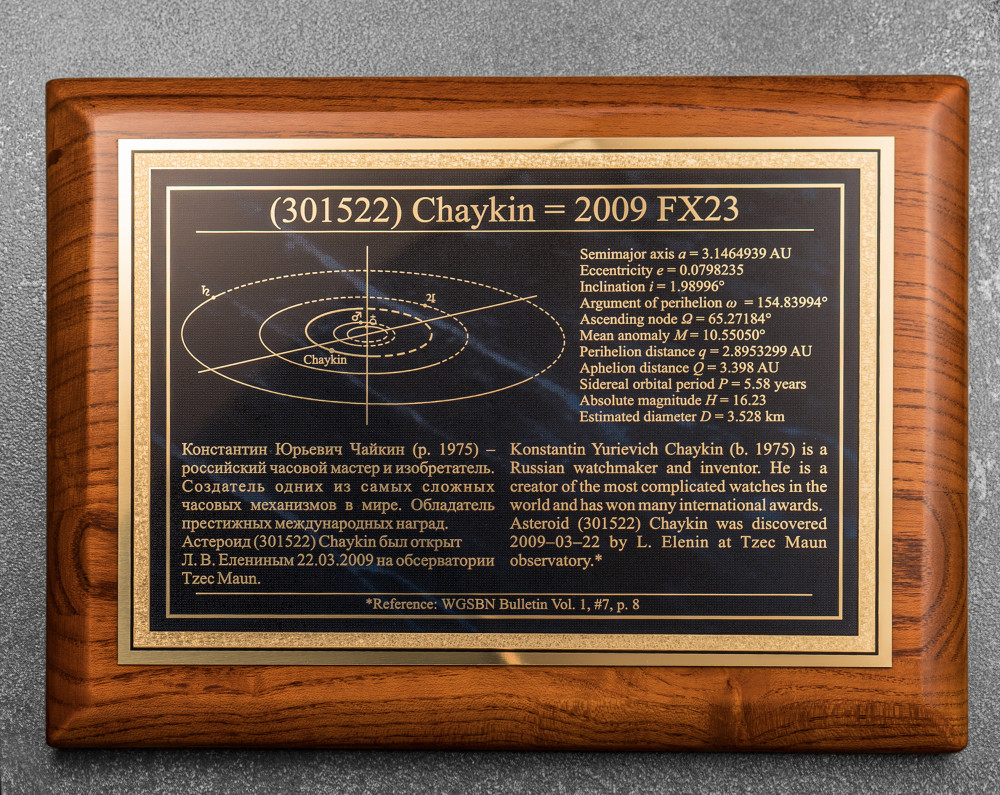 астероидов, решил назвать именем Чайкина астероид (301522) 2009 FX23, который