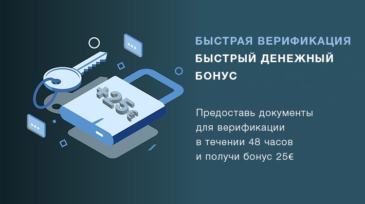 Чтобы получить свои бонусные 25 евро, трейдеру необходимо предоставить документы для верификации аккаунта в течение 48 часов с того момента, как он начнёт процедуру регистрации. Подробная инструкция о том, как это сделать и какие документы необходимо предоставить размещена на сайте брокера.